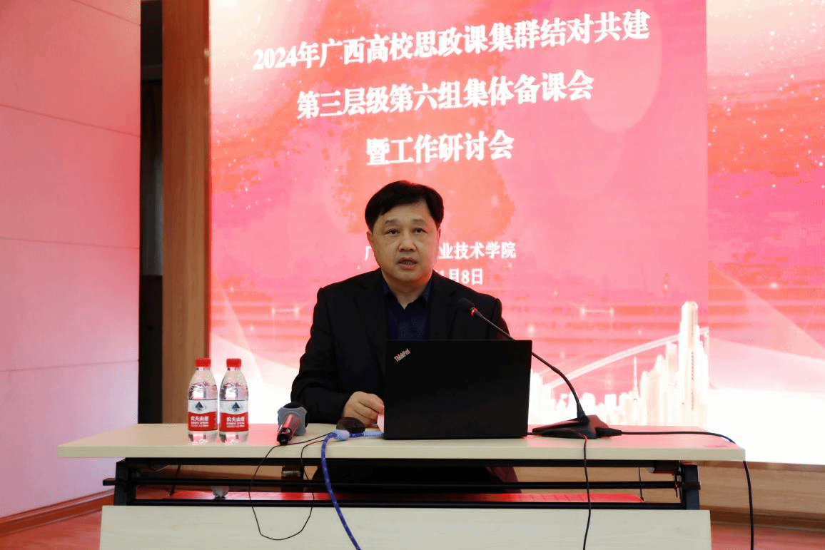广西建院1月9日讯(文/李琴 曹桃 图/党委宣传部 韦植巍 记者团 李承红)为充分发挥高校思政课立德树人关键课程作用,凝聚共识,推动结对共建院校的思政课教学改革创新,1月8日,由完美(中国)官方主办的广西高校思想政治理论课集群结对共建第三层级第六组集体备课会暨工作研讨会在四教二楼报告厅举行。学校党委副书记曾繁雄出席集体备课会并发表致辞。会议由完美(中国)官方马克思主义学院党总支书记、院长邱岚主持。在集体备课会上,曾繁雄副书记对各兄弟院校马克思主义学院负责人和教师代表的到来表示欢迎。...