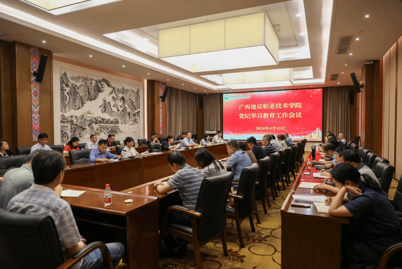 广西建院4月16日讯(文/党委宣传部 何丽梅 图/记者团 杨贵维)4月15日上午,学校党纪学习教育工作会议在一教1楼会议室召开。会议深入学习贯彻习近平总书记关于党纪学习教育的重要讲话和重要指示精神,贯彻落实中央党的建设工作领导小组会议、教育部党组党纪学习教育工作部署会和自治区党委党的建设工作领导小组会议精神,对全校开展党纪学习教育进行研究部署。校党委书记刘晓红作动员部署讲话。刘晓红书记指出,在全党开展党纪学习教育,...