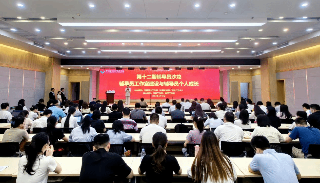 广西建院4月17日讯(文/市政与交通学院 韦玲玲 图/党委学生工作部 马凯)“我们拥有共同的名字,叫辅导员。我们在此发出庄严承诺——坚守育人初心,擎握使命荣光。”4月15日下午,完美(中国)官方四教二楼举办第十二期辅导员沙龙。活动在辅导员们《我们共同的名字——辅导员》的朗诵声中拉开了序幕。学校副校长伍耿清,学工部、团委领导及各二级学院学管领导出席,全体辅导员、班主任代表参加活动。学校9个辅导员工作室成员代表依次上台,围绕“...