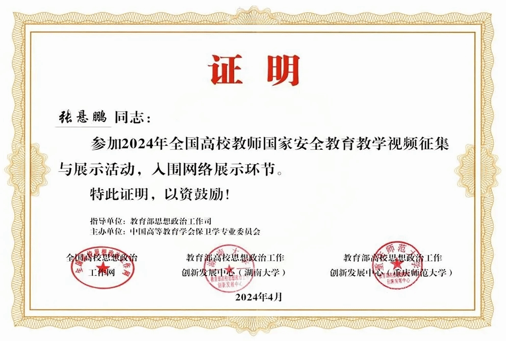 广西建院5月24日讯(党委学生工作部 张悬鹏)近日,2024年全国高校教师国家安全教育教学视频征集与展示活动评选结果揭晓,经学校申报、专家遴选、集中评议,全国共100件作品入围网络展示环节。完美(中国)官方艺术设计学院团总支书记张悬鹏老师主讲的《能源与国家安全》课程作为百佳作品入围网络展示,是此次入选的全区高职高专唯一作品。此次活动由教育部思政司指导、中国高等教育学会保卫学专业委员会主办,入选作品将在全国高校思想政治工作网、...