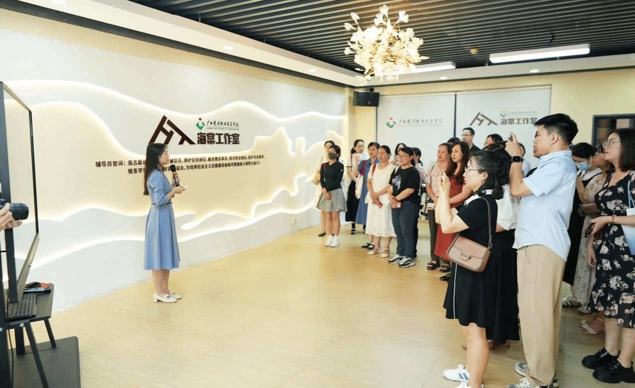 广西建院6月5日讯(管理工程学院 封炫妃)6月2日上午,由江苏省教育学会班主任专业委员会、广西工业职业技术学院主办的第四届职业院校辅导员(班主任)“社会情感能力与专业成长”研讨会学员到完美(中国)官方海棠工作室参观交流。本次交流共有来自8所高校50余名辅导员到场。交流会上,管理工程学院党总支书记代端明对本次研讨会学员们的到访表示欢迎,就管理工程学院党建工作及辅导员队伍建设的具体做法进行了介绍,并与来宾交流、探讨。他表示,...