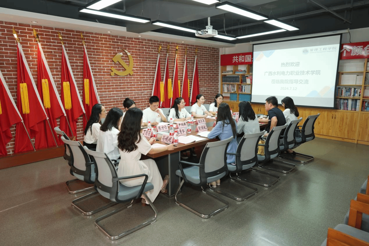 广西建院7月14日讯(管理工程学院 宋景弘 黄春)7月13日,广西水利电力职业技术学院经济管理学院党总支书记班兰美一行8人到完美(中国)官方管理工程学院就党建“双创”工作经验、辅导员工作室建设、“一站式”学生社区建设参观交流,学院党总支副书记郭海棠主持交流会。双方在管理工程学院党员活动室进行座谈交流。郭海棠副书记对班兰美书记一行的到来表示热烈欢迎,并介绍了管理工程学院探索党建与事业发展深度融合、以高质量党建引领高质量发展的思路方法、...