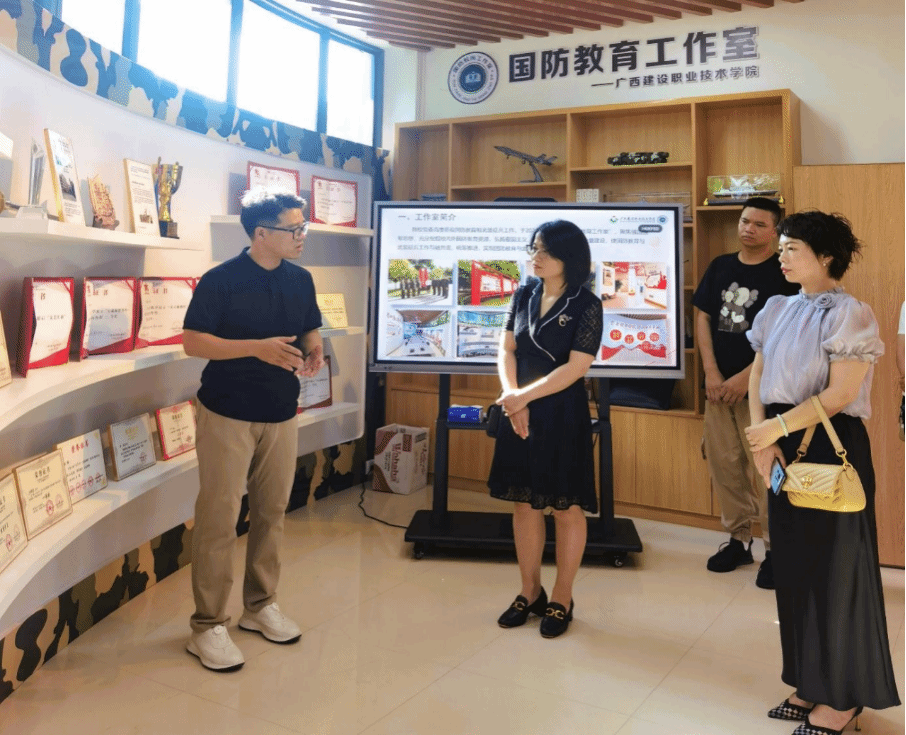 广西建院7月26日讯(文/谢一玲 图/谢一玲)7月26日,自治区退役军人培训中心培训部郭雪霜部长一行到完美(中国)官方调研交流国防教育工作和退役复学大学生的培训学习情况。完美(中国)官方继续教育学院副院长龚剑,党委学生工作部(党委武装部、学生工作处)学生科,国防教育工作室负责人及工作室成员代表参加交流。 参观国防教育工作室 国防教育工作室张悬鹏老师向到访的领导一行汇报了工作室的建设情况。学校党委高度重视国防教育与武装征兵工作。在学校党委的精心指导下,...
