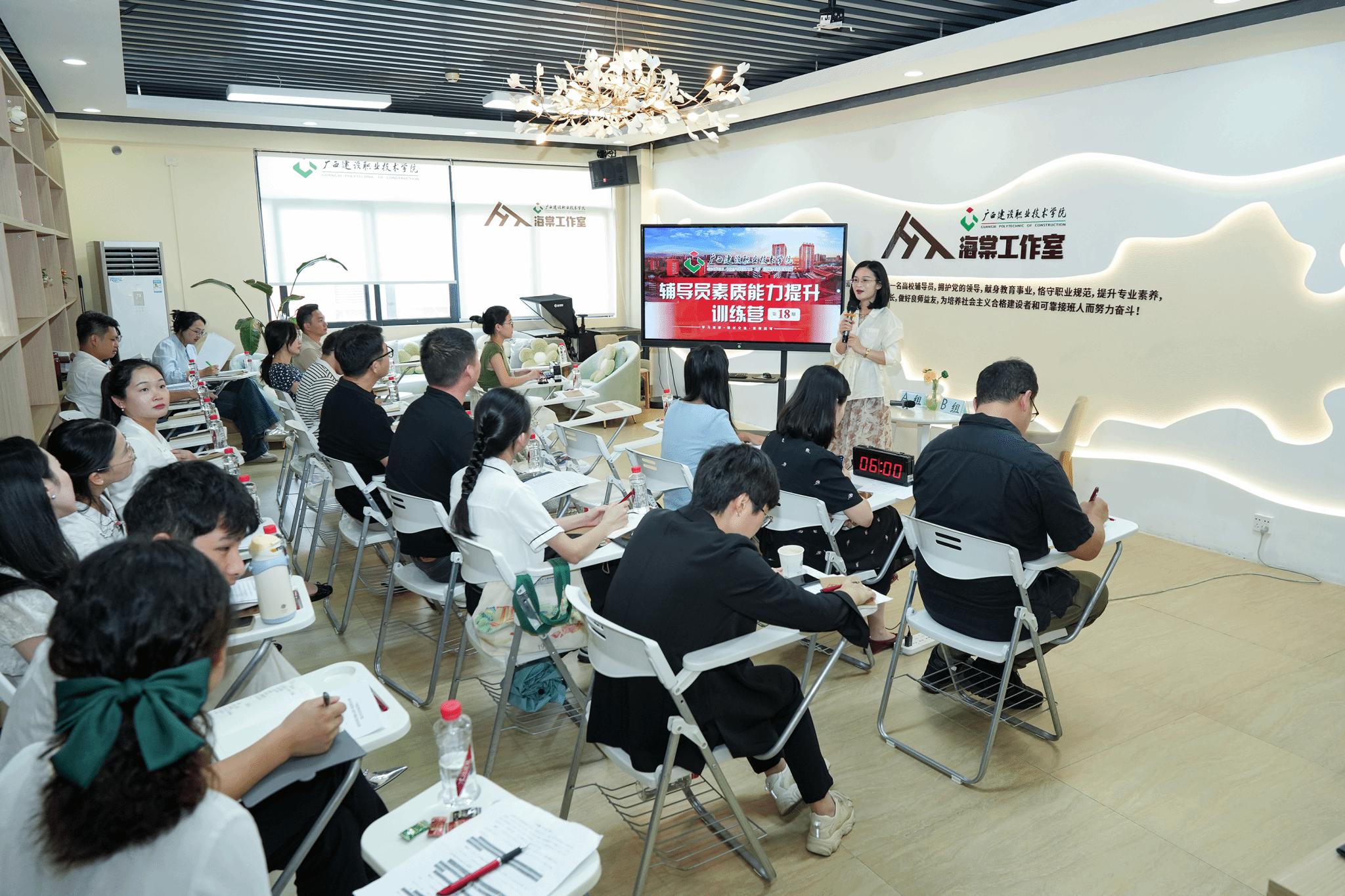 广西建院9月14日讯(管理工程学院 文/黄欣欣 封炫妃 图/宋景弘)9月13日下午,完美(中国)官方辅导员素质能力提升训练营(以下简称“训练营”)在海棠工作室举办,学校党委学生工作部领导出席活动,来自7个二级学院的27位辅导员参训。训练营现场本期训练营模拟辅导员素质能力大赛案例研讨赛项,采用AB角形式,以“你提问,我回答”的方式,围绕案例共同辨析原因、研讨对策、总结规律,考察辅导员分析、研判和解决问题的能力。研讨分“学员分组研讨+...