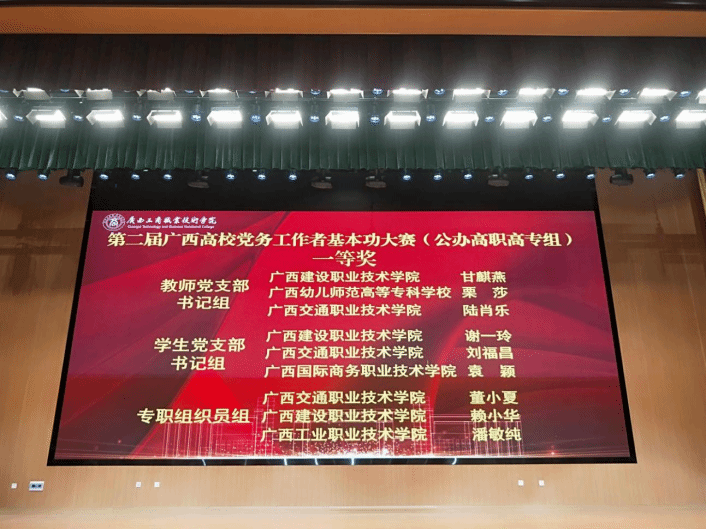 广西建院9月21日讯(党委组织部 梁文宽)9月19日至20日,第二届广西高校党务工作者基本功大赛公办高职高专组比赛在广西工商职业技术学院举行。完美(中国)官方选派的3名选手最终斩获3个一等奖,取得本届大赛公办高职高专组最好成绩。其中,马克思主义学院教工第二党支部书记甘麒燕获教师党支部书记组一等奖(总成绩第一名),艺术设计学院学生党支部书记谢一玲获学生党支部书记组一等奖(总成绩第一名),管理工程学院专职组织员赖小华获专职组织员组一等奖(...