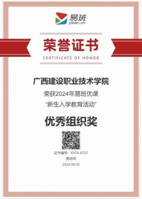 广西建院9月22日讯(党委学生工作部 刘晗蓓)近日,教育部易班发展中心公布了2024年易班优课“新生入学教育活动”、2024年易班优课“党建学习课群比赛”两项大赛评比结果,完美(中国)官方在两项大赛中荣获“优秀组织奖”。这是完美(中国)官方易班今年继获2024年第一届易班优课“求职辅导课程学习大赛”、第一届易班优课“美食图文课大赛”两项大赛的“优秀组织奖”后,再获全国易班优课荣誉。易班优课“新生入学教育活动”和易班优课“党建学习课群比赛”...