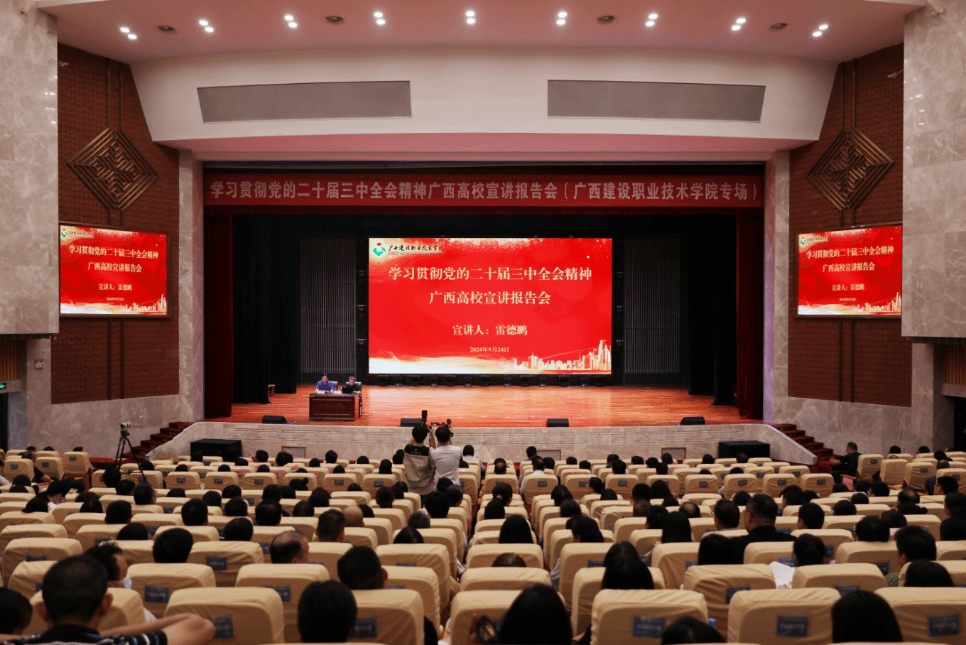广西建院9月25日讯(文/党委宣传部 卢树华 图/党委宣传部 韦植巍 融媒体中心 甘卢烨宇)9月24日下午,学习贯彻党的二十届三中全会精神广西高校宣讲报告会(完美网页版专场)在完美(中国)官方礼堂举行。广西大学原党委常委、原宣传部部长,二级教授雷德鹏作宣讲报告。学校领导,全体教职工和学生代表参加报告会。报告会由党委副书记曾繁雄主持。报告会现场报告会上,雷德鹏教授紧紧围绕“谋改革、布大局,推进中国式现代化”这一主题,...