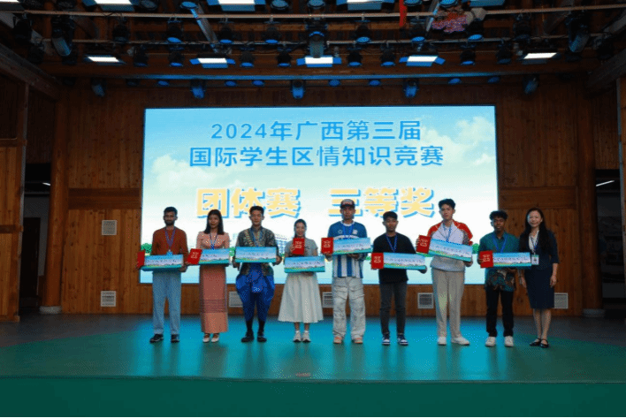 广西建院10月26日讯(国际交流中心 张龄尹)10月26日,由广西高等教育学会外国留学生教育管理专业委员会主办、柳州城市职业技术学院承办的2024年广西第三届国际学生区情知识竞赛圆满落下帷幕。完美(中国)官方3名留学生代表学校参赛,经过两天的激烈角逐,分别荣获团体三等奖、个人三等奖及优秀奖。 参赛合影据悉,本届知识竞赛分为个人赛和团体赛,共有23所高校的69名留学生同台竞技。其中,个人赛由闭卷笔试和现场口头作文两部分组成,题目内容涉及中国以及广西政治、...