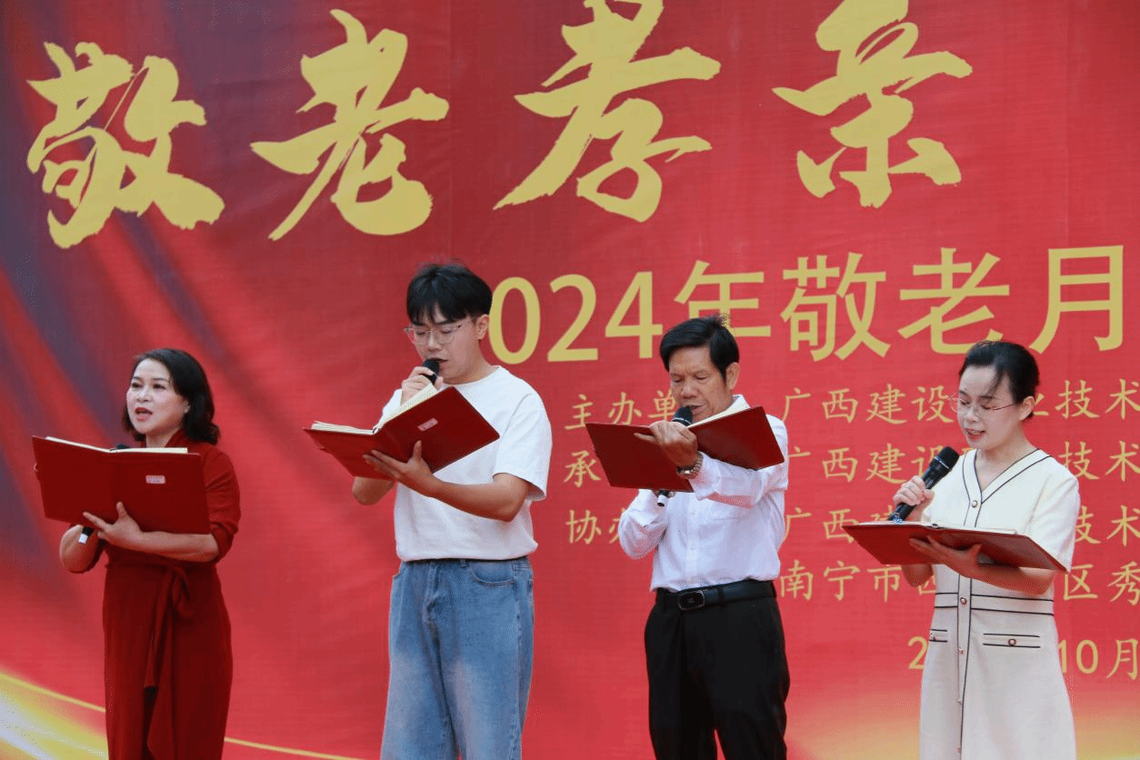 广西建院10月29日讯(工会 黄军萍)2024年10月是我国第15个敬老月。为弘扬中华民族尊老敬老的传统美德,营造养老孝老敬老的社会氛围,学校新时代文明实践所、学校工会、离退休党总支携手秀灵北社区居委会、建筑与规划学院、设备与环境学院、农行南宁科技支行、爱尔眼科医院,于10月26日在建苑小区举办“敬老孝亲 情暖金秋”敬老月文艺展演。展演由建筑与规划学院选送的节目《舞狮》拉开帷幕。随后,舞蹈、时装秀、街舞、诗朗诵、民乐与书法融合展示等10个节目先后登台表演,...