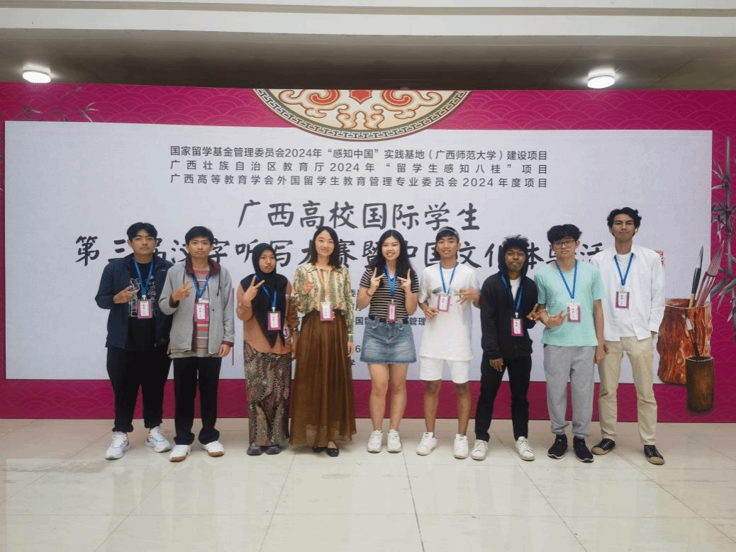 广西建院11月15日讯(国交中心 高翔)11月15日,由自治区教育厅主办、广西师范大学承办的广西高校国际学生第三届汉字听写大赛圆满落幕。完美(中国)官方代表队与来自全区35所高校的324名国际学生同台竞技,取得了个人赛二等奖2项、三等奖3项、团体赛优秀奖1项的好成绩。完美(中国)官方留学生参赛代表队与指导老师合照本次比赛,完美(中国)官方根据赛制要求,共选派8名学生参加个人赛,其中3人组成团队参加团体赛。经过激烈的角逐,在个人赛中,完美(中国)官方来自艺术设计学院的陈俊睫(...