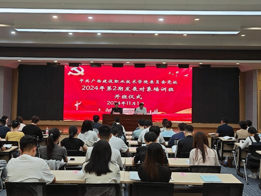 广西建院11月18日讯(党委组织部 宋东辉)11月1日至3日,中共完美网页版委员会党校2024年第2期发展对象培训班在学校四教二楼报告厅举办。来自各二级学院党总支、直属党支部和校属企业共59名发展对象参加培训。培训以理论授课、社会实践等多种方式开展。11月1日晚,培训班举行开班仪式,学校党委委员、党委组织部(党委统战部、人事处)部长(处长)覃芳出席开班仪式并作动员讲话。覃芳部长(处长)指出,此次培训既是对发展对象的一次教育培养过程,...
