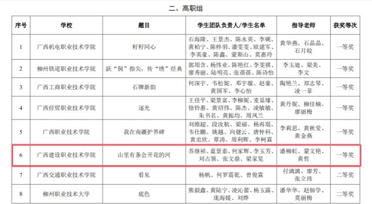 广西建院12月2日讯(马克思主义学院 宋佳雄)近日,自治区教育厅公布了“我心中的思政课”—2024年广西高校大学生微电影展示活动获奖作品名单。完美(中国)官方马克思主义学院推送的作品《山里有条会开花的河》荣获高职高专组一等奖。《山里有条会开花的河》由我院思政课教师潘柳虹、蒙文艳、黄哲三位老师指导,苏继祯等七名同学参与创作。讲述了建筑工程设计专业的阿祯坚守瑶山,投身乡村振兴,用专业知识回馈家乡的故事。故事情节扣人心弦、感人至深,...