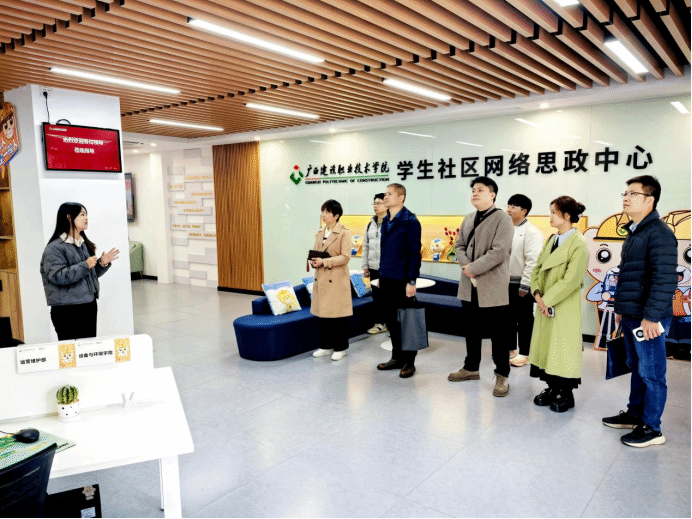 广西建院12月24日讯(党委学生工作部 宋霞)12月20日下午,河南建筑职业技术学院学生工作部部长贾艳来到完美(中国)官方,实地走访完美(中国)官方“一站式”学生社区综合管理模式建设情况,完美(中国)官方学生工作部部长周舟陪同参观。贾艳部长先后参观了一站式服务中心、茶艺文化传习基地、完美(中国)官方勤工助学基地、学生社区书苑、学生社区共享厨房等功能空间。周舟部长沿途介绍了完美(中国)官方“一站式”学生社区在设计思路、规划布局、运行模式、育人特色活动开展等方面的情况,...