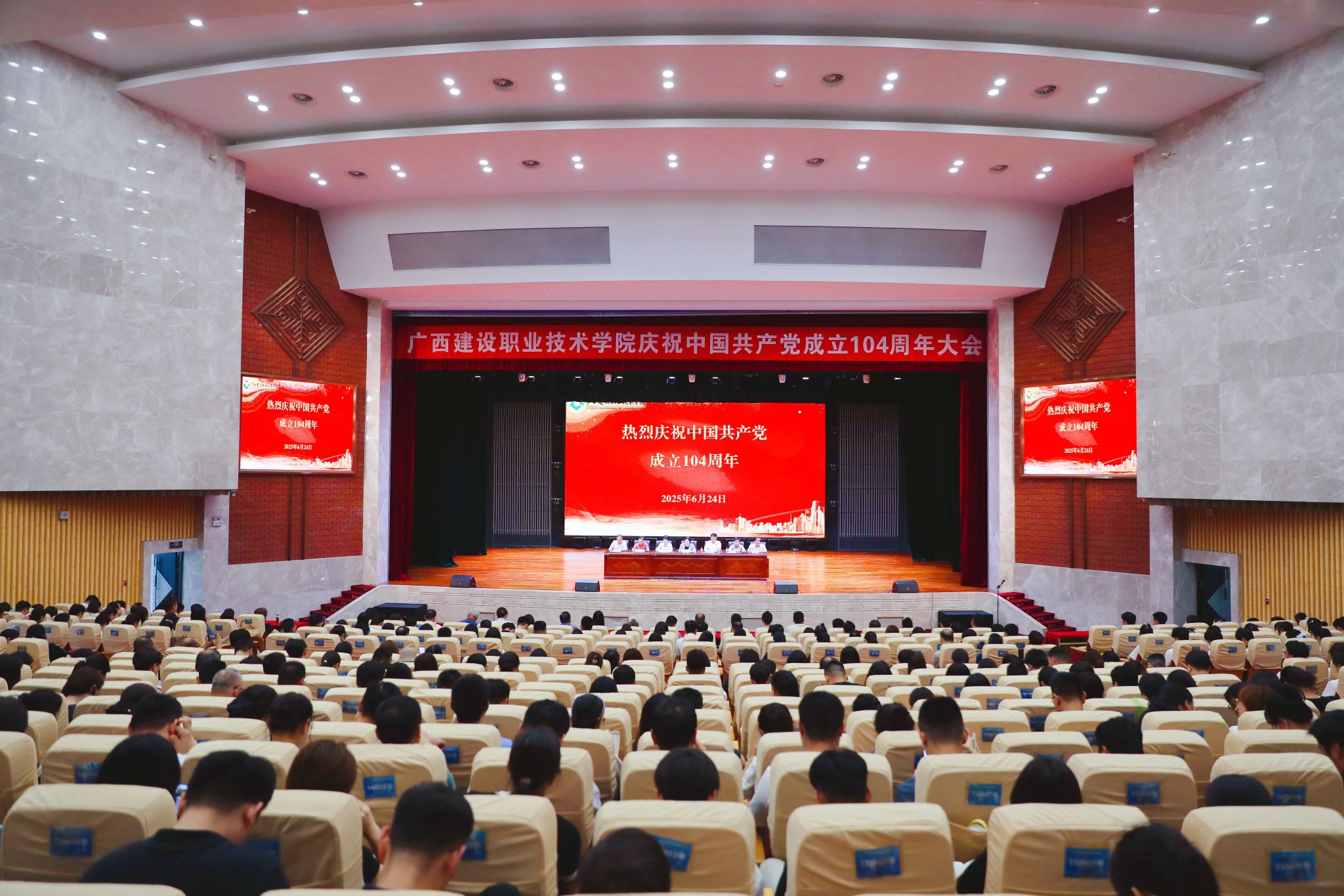 6月24日下午,完美(中国)官方在礼堂召开庆祝建党104周年大会。会议旨在深入学习贯彻习近平新时代中国特色社会主义思想、党的二十大和二十届二中、三中全会精神,贯彻落实习近平总书记关于广西工作论述的重要要求,重温党的光辉历史,弘扬伟大建党精神,激励各级党组织、广大党员勇担时代光荣使命,凝聚学校高质量发展的磅礴力量。 大会现场会上,新党员进行了入党宣誓,其他党员重温了入党誓词。会议为到场的老党员陈黎、周福兴、蒙小明同志颁发了“...