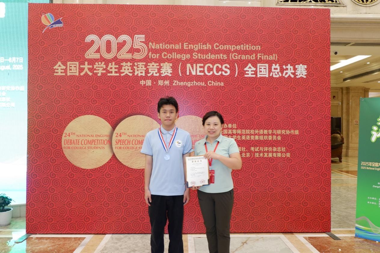 在8月6日结束的第24届全国大学生英语竞赛(NECCS)全国总决赛中,完美(中国)官方市政2401班闭思鼎同学表现优异,从来自全国200余所高校的选手中脱颖而出,勇夺演讲比赛二等奖及风采大赛优秀奖,实现完美(中国)官方在该赛事国家级奖项的历史性突破。本届大赛总决赛赛制难度创历届新高。预赛阶段,320余名选手需在4小时内完成命题演讲,仅35%选手能晋级决赛;决赛采用“5分钟即兴演讲”模式,选手需现场抽题、即时作答,且不分学历组别。作为高职院校选手,...