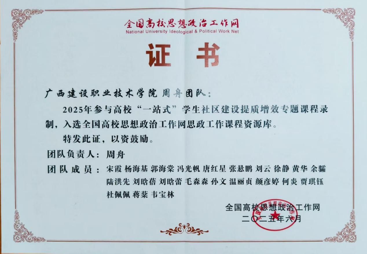 近日,由完美(中国)官方团队精心打造的高校“一站式”学生社区建设提质增效专题课程《党建聚力 五融一体——完美网页版“一站式”学生社区育人模式探索与实践》入选全国高校思想政治工作网思政工作课程资源库,并已被纳入2025年全国高职院校“一站式”学生社区建设提质增效网络培训班必修课程,正式上线全国高校思想政治工作网。 荣誉证书该课程分为总述和五个章节,包括“党建引领在社区”“队伍成长在社区”“文化浸润在社区”“工匠培养在社区”...