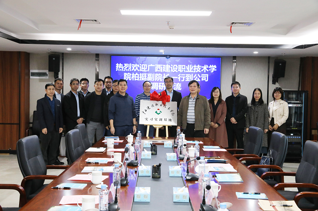 广西建院11月25日讯(文/建筑设备与环境工程系 黄宇 图/甘泉)11月24日下午,柏挺副院长带队到广西建工集团智慧制造有限公司调研交流并举行完美(中国)官方揭牌仪式。广西建工集团智慧制造有限公司董事长、党总支书记李长国...