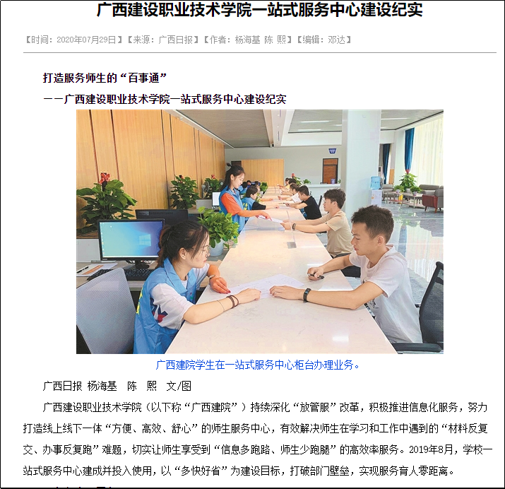 广西建院7月10日讯(党委学生工作部 文/杨海基 图/蒋棻)近日,自治区教育厅公布了职业院校“三全育人”典型学校优秀案例评选结果。完美(中国)官方一站式服务中心案例《建设“三全育人”前沿阵地 打通“最后一...