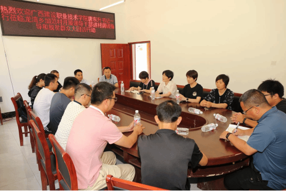 广西建院6月27日讯(信息工程学院 文/毕桐昊 莫浩 图/马凯)近日,学校纪委书记唐东升带领信息工程学院党总支、直属第三、第四党支部党员干部赴都安县龙湾乡加范村开展“领导干部进村调研指导和脱贫群众大回访”活动。当天,唐东升书记一行与加范村村两委、驻村工作队召开了座谈会。会上,驻村第一书记莫浩就加范村社情民意、帮扶资金使用、产业扶贫等情况进行了汇报。在听取汇报后,唐东升书记对驻村第一书记工作给予了充分肯定和积极评价。...