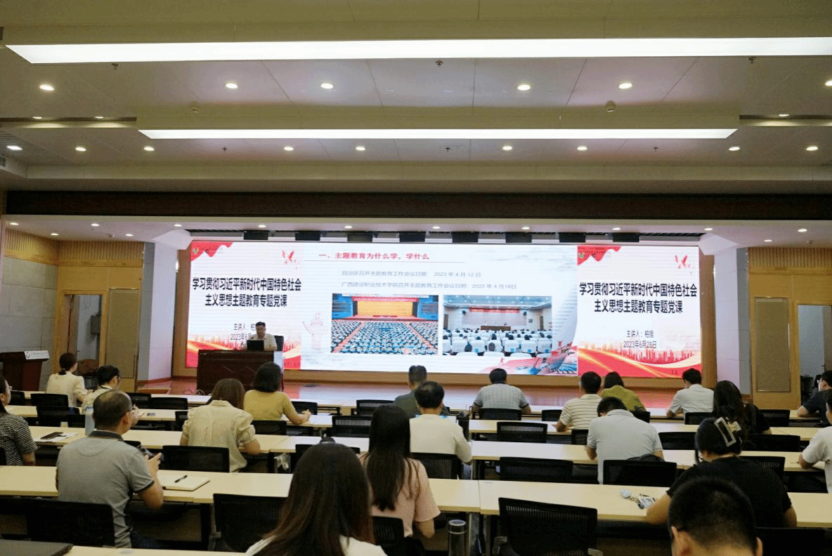 广西建院6月28日讯(文/党委宣传部 韦植巍 图/记者团 杨贵维)6月27日下午,学校党委书记刘晓红以“深刻感悟习近平新时代中国特色社会主义思想 在推动学校高质量发展新征程上再建新功”为题为全校师生党员讲授专题党课。自治区党委主题教育第十二巡回指导组组长、桂林理工大学原校长、党委原副书记解庆林,指导组成员、百色干部学院学员工作部副主任覃波到会指导。专题党课现场自治区党委主题教育第十二巡回指导组组长、桂林理工大学原校长、...