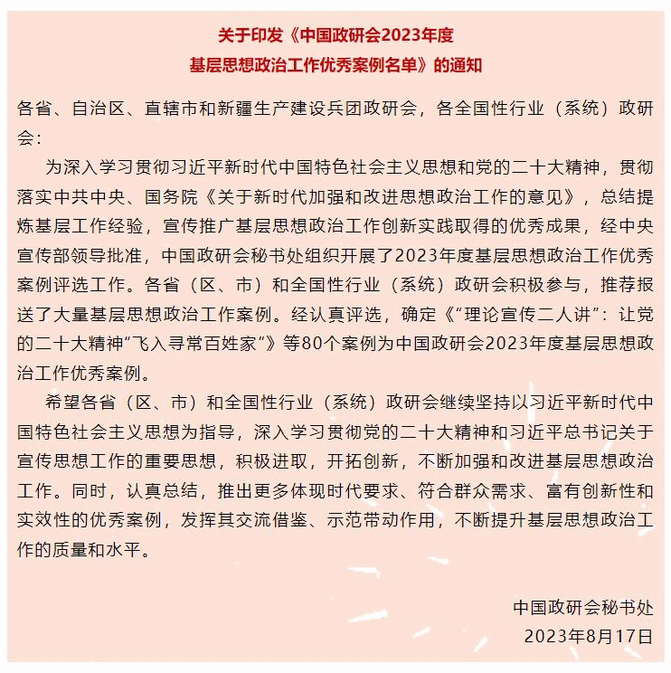 广西建院8月28日讯(马克思主义学院 李生) 近日,中国政研会公布了2023年度基层思想政治工作优秀案例名单,由各省(区、市)和全国性行业(系统)政研会推荐的80个案例入选。其中,由广西壮族自治区政研会推荐,完美(中国)官方马克思主义学院李生副院长报送的《“技术赋能·沉浸体验”:让思政课堂活起来》案例入选。本案例总结了完美(中国)官方马克思主义学院虚拟仿真思政课教学经验,通过虚拟仿真“馆课结合”模式开展思政课教学创新。虚拟仿真思政课围绕“...