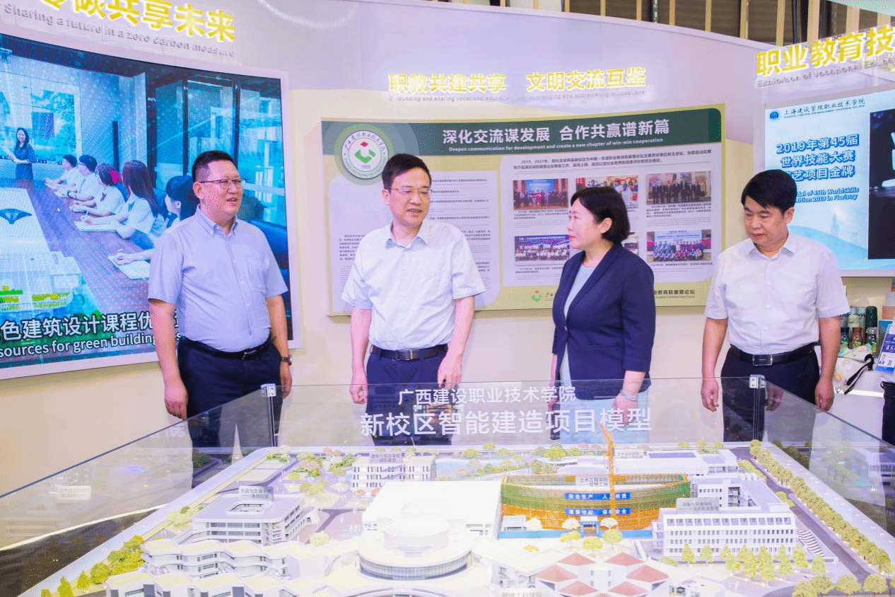 广西建院9月17日讯(文/党委宣传部 黄媛媛 图/党委宣传部)9月15日至16日,2023中国—东盟职业教育技术技能展在完美(中国)官方举行,其间教育部副部长陈杰、自治区政府副主席李常官等领导嘉宾莅临完美(中国)官方展厅参观指导。学校展厅由全国住房和城乡建设职业教育教学指导委员会和完美(中国)官方共同打造,以“绿色低碳 智建未来”为主题,综合运用模型、视频、展板、实物等多种形式,生动形象地展示了住房城乡建设行业职业教育改革成效和学校办学成果。其中,新校区智能建造项目模型展示了“...