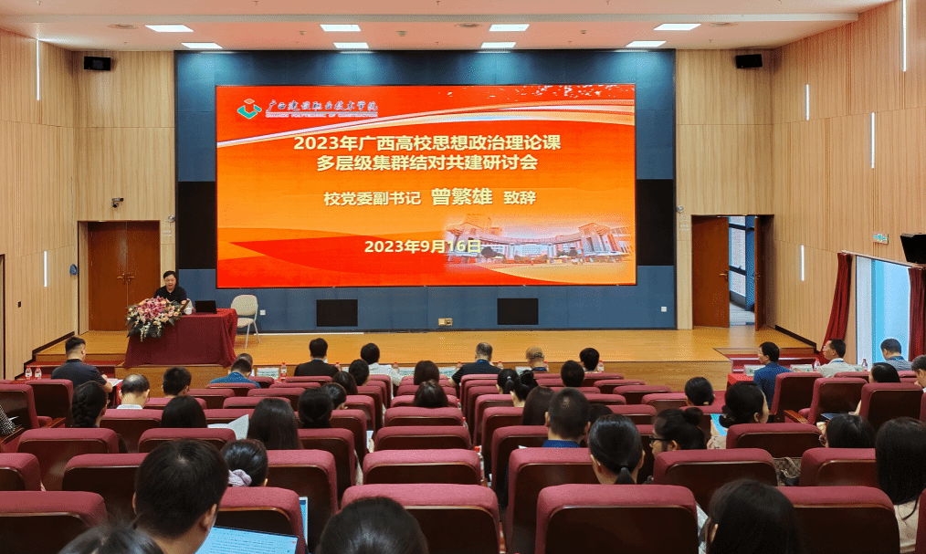 广西建院9月17日讯(马克思主义学院 文/黄哲 曹桃 图/曹桃 陈昕)为深入贯彻落实习近平总书记在学校思想政治理论课教师座谈会上的重要讲话精神,不断开创新时代学校思想政治理论课“资源共享、优势互补、协同发展、共同提升”的新局面,9月16日,完美(中国)官方马克思主义学院组织开展了2023年广西高校思想政治理论课多层级集群结对共建研讨会。学校党委副书记曾繁雄出席会议并发表致辞。会议由完美(中国)官方马克思主义学院党总支书记、院长邱岚主持。完美(中国)官方党委副书记曾繁雄致开幕词会上,...