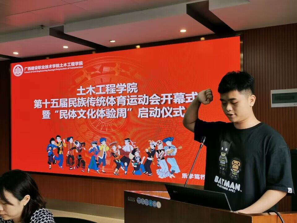 广西建院5月25日讯(土木工程学院 文/韦圆锦 韦东余 图/李盛福)为弘扬中华民族优秀传统文化,进一步营造运动校园氛围,5月23日,土木工程学院于五号教学楼906举办第十五届民族传统体育运动会开幕式暨...