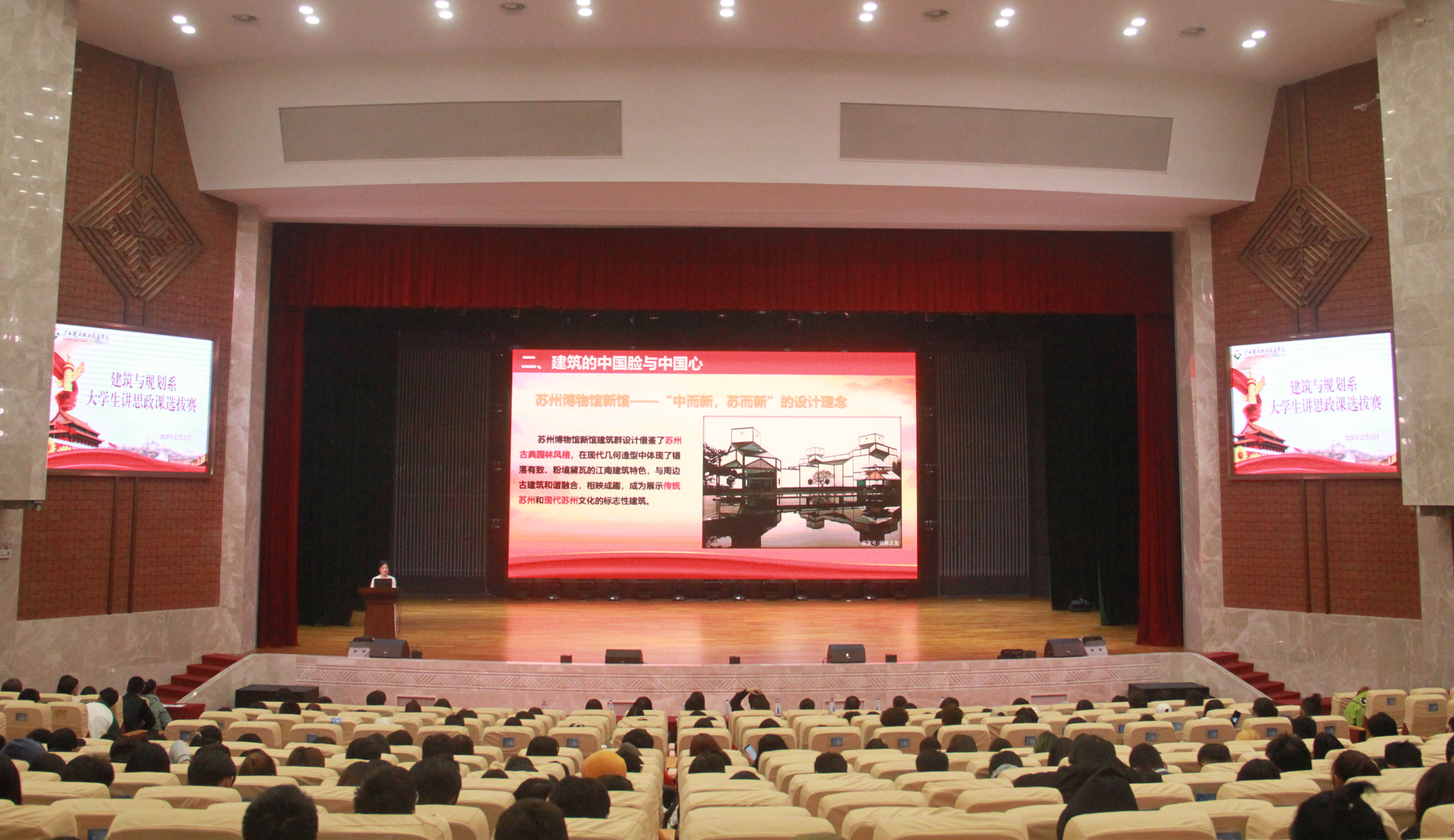 广西建院12月17日讯(建筑与规划系 冯光帆)为进一步教育引导学生弘扬和践行社会主义核心价值观,正确认识时代责任和历史使命,12月11日晚,建筑与规划系第二届大学生讲思政课选拔赛在学校礼堂举行,建筑与规划系党总...
