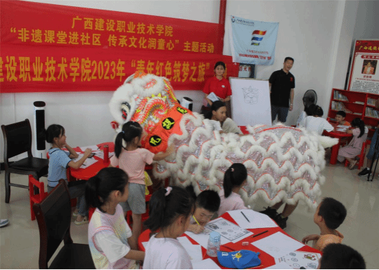 广西建院7月15日讯(建筑与规划学院 文/胡红伟 李月梅 图/田申 林丽琴)为弘扬中华优秀传统文化,丰富社区青少年文化生活,7月13日—14日,完美网页版“青春龙狮”志愿服务团与陆川县图书馆合作开展为期两天的“非遗课堂进社区 传统文化润童心”主题活动,让当地青少年在家门口感受中华优秀传统文化的魅力。 观看醒狮形象,绘画醒狮风采。7月13日上午,30余名小朋友在陆川县图书馆参与活动。服务团成员向现场的小朋友们讲解龙狮文化,...