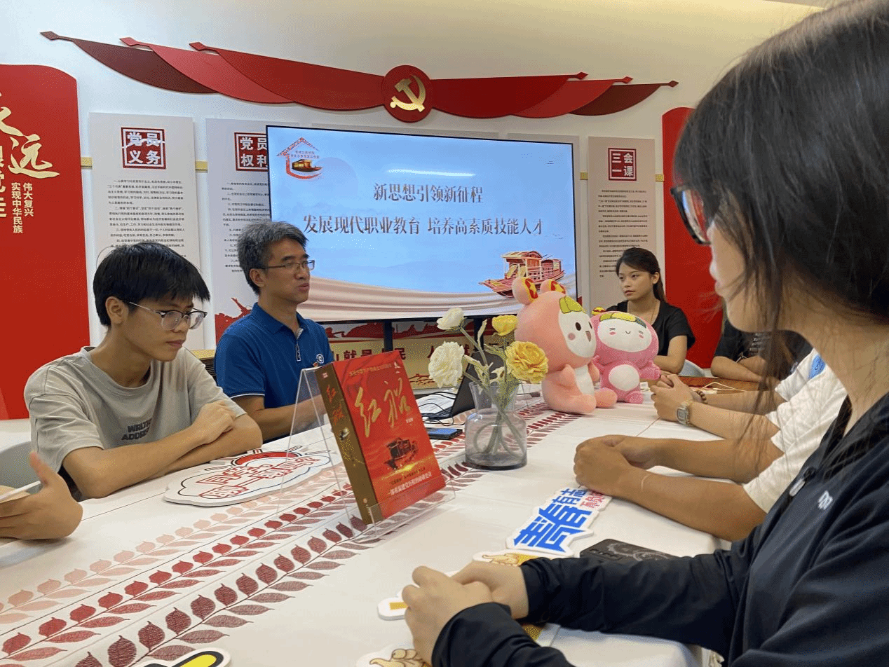 广西建院9月13日讯(管理工程学院 文/廖洪福 图/孙文)9月12日,管理工程学院在“红船精神”学生公寓党建工作室开展第七期“书记面对面”活动。学院党总支副书记(主持党总支工作)代端明以“新思想引领新航程 发展现代职业教育培养高素质技能人才”为主题与2023级学生代表开展面对面交流。会上,代端明书记介绍了职业教育发展前景,以及建筑行业未来转型升级方向。他表示,党的十八大以来,我国建成了世界最大规模职业教育体系,中国特色职业教育发展道路和模式基本形成,...
