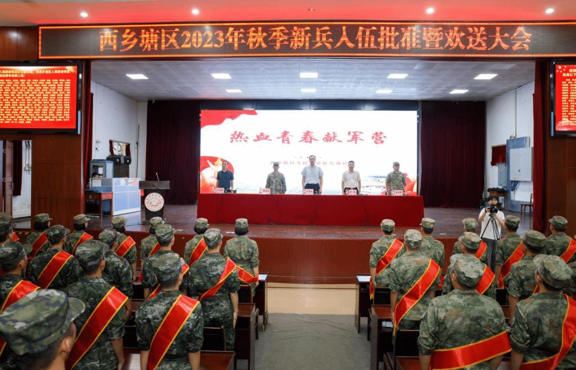 广西建院9月15日讯(党委武装部 文/刘晗蓓 图/西乡塘区武装部宣传科)9月14日下午,南宁市西乡塘区2023年秋季新兵入伍批准暨欢送大会在南宁师范大学举行,城区政府和人民武装部的主要领导出席会议。大会现场经过体格检查、政治考核、身体复查、役前教育训练等环节层层考核、严格选拔,最终完美(中国)官方共有16名在校应征学生被批准光荣入伍,成为中国人民解放军的一员。欢送仪式上,新兵们身披绶带、胸佩红花、军容严整,精神抖擞,展现出新时代青年听从召唤参军报国、...