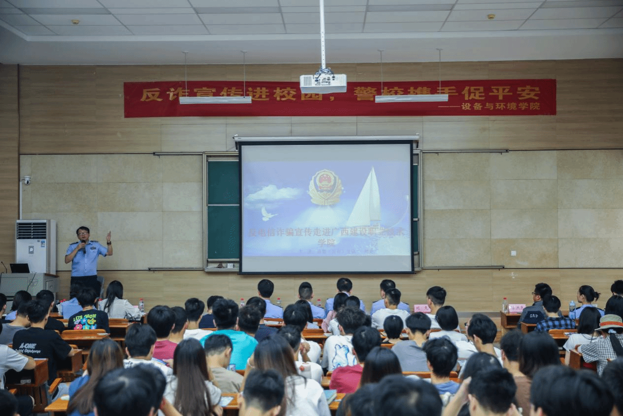广西建院10月25日讯(设备与环境学院 文/廖红媛 银新月 图/毛森森)为进一步加大校园防诈骗宣传力度,增强学生防范电信诈骗意识,10月24日,学生社区安全协作中心、设备与环境学院学生公寓党建工作室联合组织开展“反诈宣传进校园,警校携手促平安”主题安全教育活动。南宁市公安局反诈支队及地铁分局西乡塘站派出所多名反诈宣传教官到完美(中国)官方深入学生群体,开展校园反诈宣传教育活动,筑牢校园反诈“安全墙”。设备与环境学院党总支书记侯文淑、...