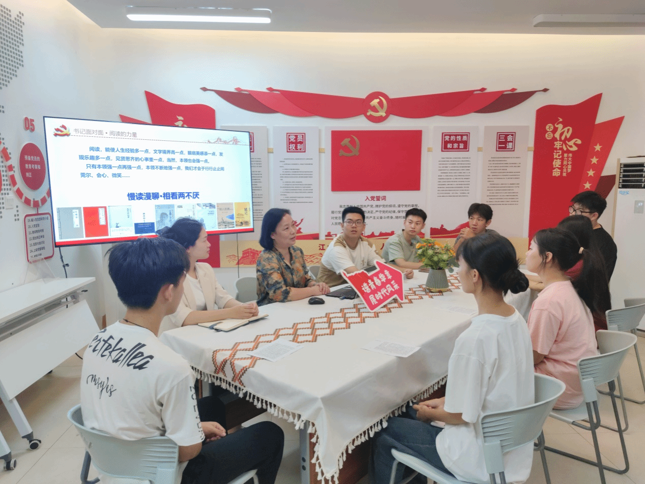 广西建院10月31日讯(管理工程学院 文/黄春 颜彦婷 图/饶富国)为培养学生的阅读习惯和自学能力,通过阅读提升自身素养,10月30日,管理工程学院在“红船精神”学生公寓党建工作室开展第8期“书记面对面”活动。学院教工第二党支部书记周慧玲以“阅读的力量”为主题与2023级学生代表开展面对面交流。周慧玲书记以阅读的名言和诗句拉开这期“书记面对面”的序幕,鼓励同学们把书卷当成人生挚友,以书籍为伴。在交流过程中,了解到同学们对《...