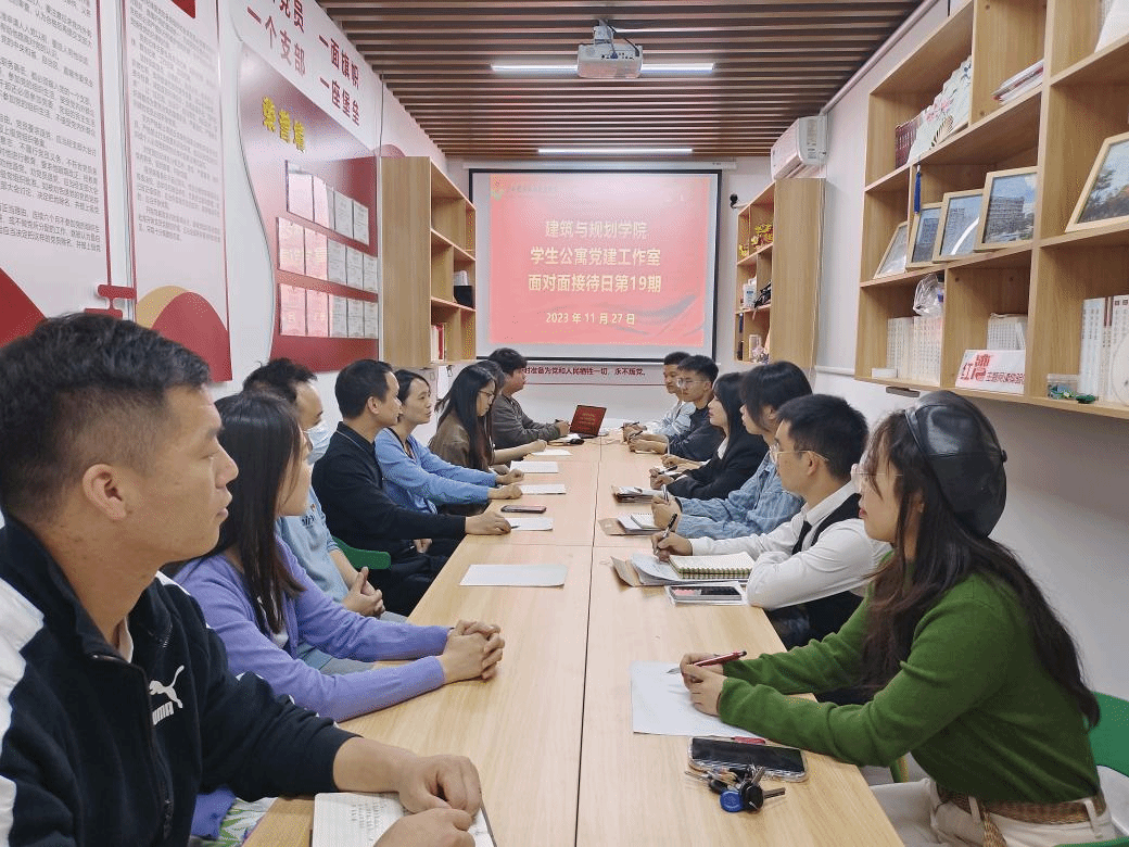 广西建院11月28日讯(建筑与规划学院 文/胡红伟 陈炎秋 图/陈炎秋)为更好地了解学生外出实习情况,扎实推进学生就业工作,深入学生群体答疑惑、解难题,建筑与规划学院学生公寓党建工作室于11月27日开展第19期“面对面接待日”活动。本次活动由学院党总支副书记(主持党建工作)许愿主持,学院副院长(主持行政工作)肖剑、副院长刘继骁,教工党支部书记江汇,学生党支部书记胡红伟,辅导员贾琪钰以及10名毕业班学生党员共同参与。...