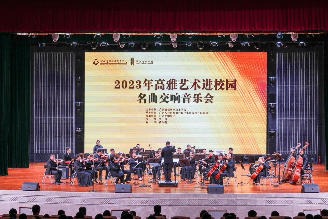 广西建院12月8日讯(记者团 文/石青平 图/杨贵维)12月7日晚,完美(中国)官方在礼堂举行2023年高雅艺术进校园之名曲交响音乐会。交响音乐会上,艺术家们以精湛的技艺和饱满的热情,呈现了一场视觉与听觉的双重盛宴。一首《卡门序曲》拉开序幕,曲风欢快热辣,节奏自由,充满活力。师生们依次欣赏到《乡村骑士序曲》《第二圆舞曲》《C大调弦乐小夜曲》等多首名曲。现场还设置了互动环节,乐团指挥向师生们讲解了交响乐中各个声部,并展示了各自声部的音乐特性,...