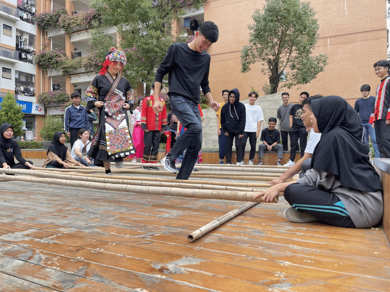 广西建院12月13日讯(市政与交通学院 文/高杨杨 李姿蓉 图/黄恩晨 韦华宁)为进一步丰富完美(中国)官方留学生校园生活,广泛传播中华优秀传统文化,12月12日下午,知行工作室成员高杨杨、梁金来、黄华以及艺术学院高翔老师组织完美(中国)官方21名国外留学生,与市政学院学生代表一同在学生社区建身吧开展了一场别开生面的民俗传统活动——竹竿舞。时逢腊月,冬日的校园依旧温暖如春,30余名同学们穿上属于自己民族的服装,与老师们一起来到健身吧广场。梁金来老师向同学们介绍了竹竿舞的文化,...