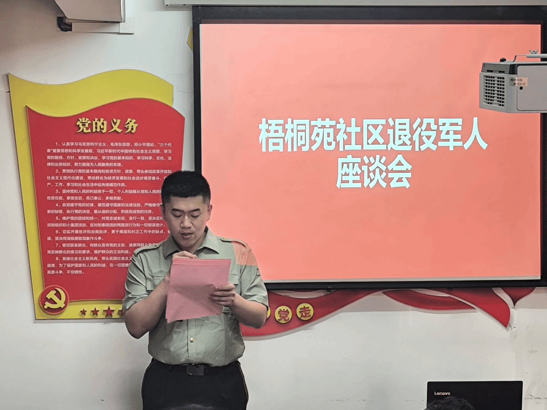 广西建院3月27日讯(管理工程学院 封炫妃 黄春)为引导广大青年传承和弘扬雷锋精神,展现新时代青年志愿风采,3月26日下午,管理工程学院“格物”专业化志愿者团队走进梧桐苑社区,开展雷锋精神主题宣讲并在社区开展志愿活动。“格物”志愿者团队在社区精心组织了雷锋精神和雷锋事迹知识抢答活动,推动“雷锋精神”在社区居民中的深入实践与普及。活动中,退役士兵王文韦同学以《雷锋精神树立了践行党的初心使命的光辉典范》为题对社区居民进行雷锋精神宣讲。...