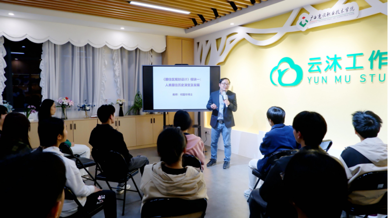 广西建院4月10日讯(建筑与规划学院 文/宋霞 图/黄杰鹏)近日,建筑与规划学院引进的人才——清华大学建筑与城市规划设计专业博士、清华大学客座教授何国华老师入驻云沐工作室,与各专业学生代表开展面对面交流活动。活动中,何博士作了《人类居住历史演变及文化发展》主题分享。活动由建筑与规划学院辅导员、云沐工作室成员宋霞老师主持。 活动现场 何国华博士从“人类居住起源”“我国古代居住史”“西方古代居住史”“西方近现代居住史”...