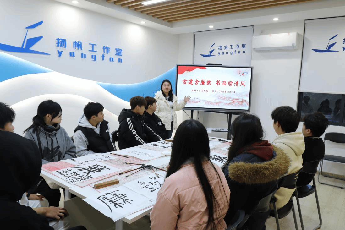 广西建院12月22日讯(土木工程学院讯 文/石明成 图/赵子丞)为进一步弘扬廉洁精神,增强同学们的廉洁意识,近日,土木工程学院在扬帆工作室、党建工作室举办了以“古建含廉韵,书画绘清风”为主题的书法体验活动。本次活动由土木工程学院团总支主办,土木工程学院学生第三党支部承办,活动吸引了近200名师生参与。活动现场石明成老师详细介绍了“廉”字的由来和深刻含义。她结合古建筑上雕刻的廉洁印记讲述了其背后的文化意义,带领同学们欣赏蕴含廉洁寓意的书画作品,...