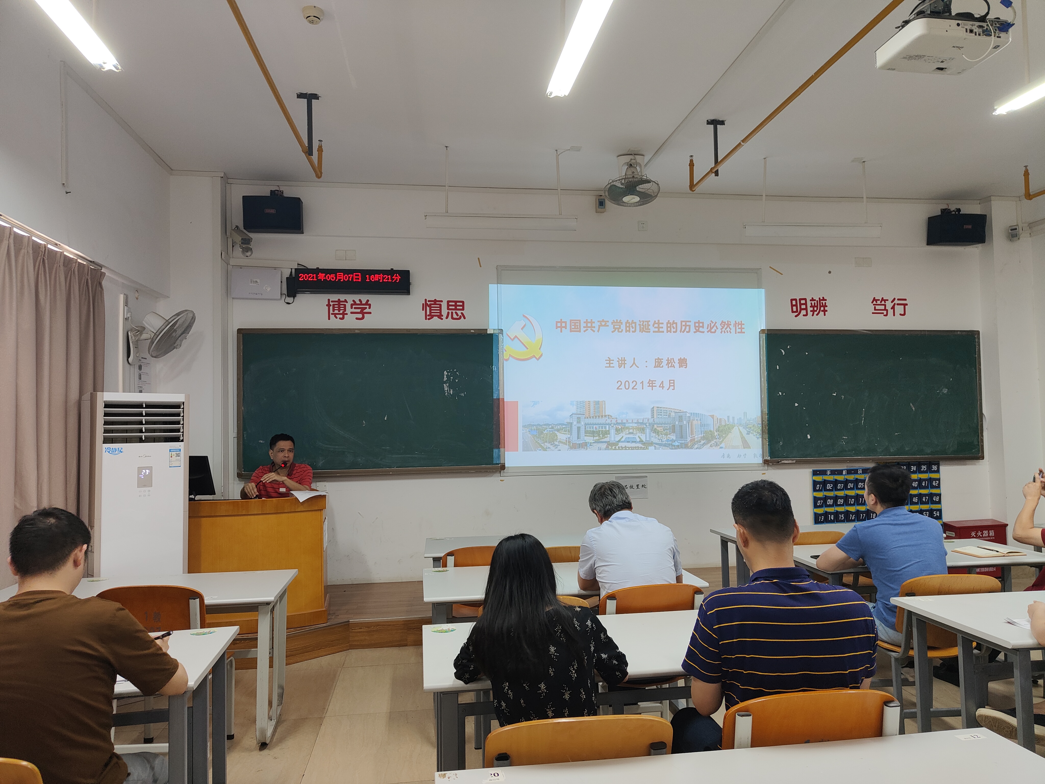 广西建院5月1日讯(党委组织部 谢刚)4月30日下午,直属第二党支部在1教304教室开展了党史学习教育专题党课,党课由党支部书记庞松鹤主讲,支部全体党员参加学习。 庞松鹤书记以“中国共产党的诞生的历史必然性”为主...