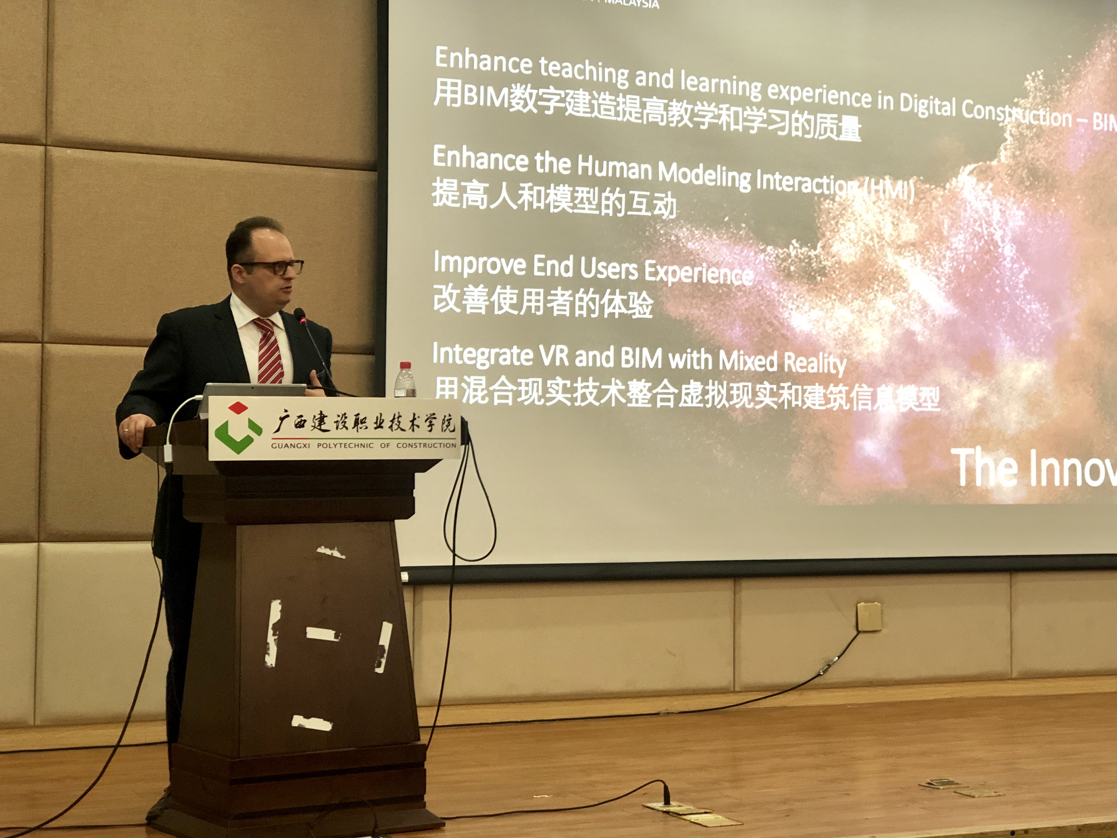 广西建院5月26日讯(教务科研处 谢泽芸)为开阔完美(中国)官方师生视野,提高科研水平,5月25日,宁波诺丁汉大学乔治斯·卡普吉尼斯博士应邀来完美(中国)官方分别作《BIM技术前沿与标准、公共数据环境和其他可视化技术如何提升学生就业竞争...