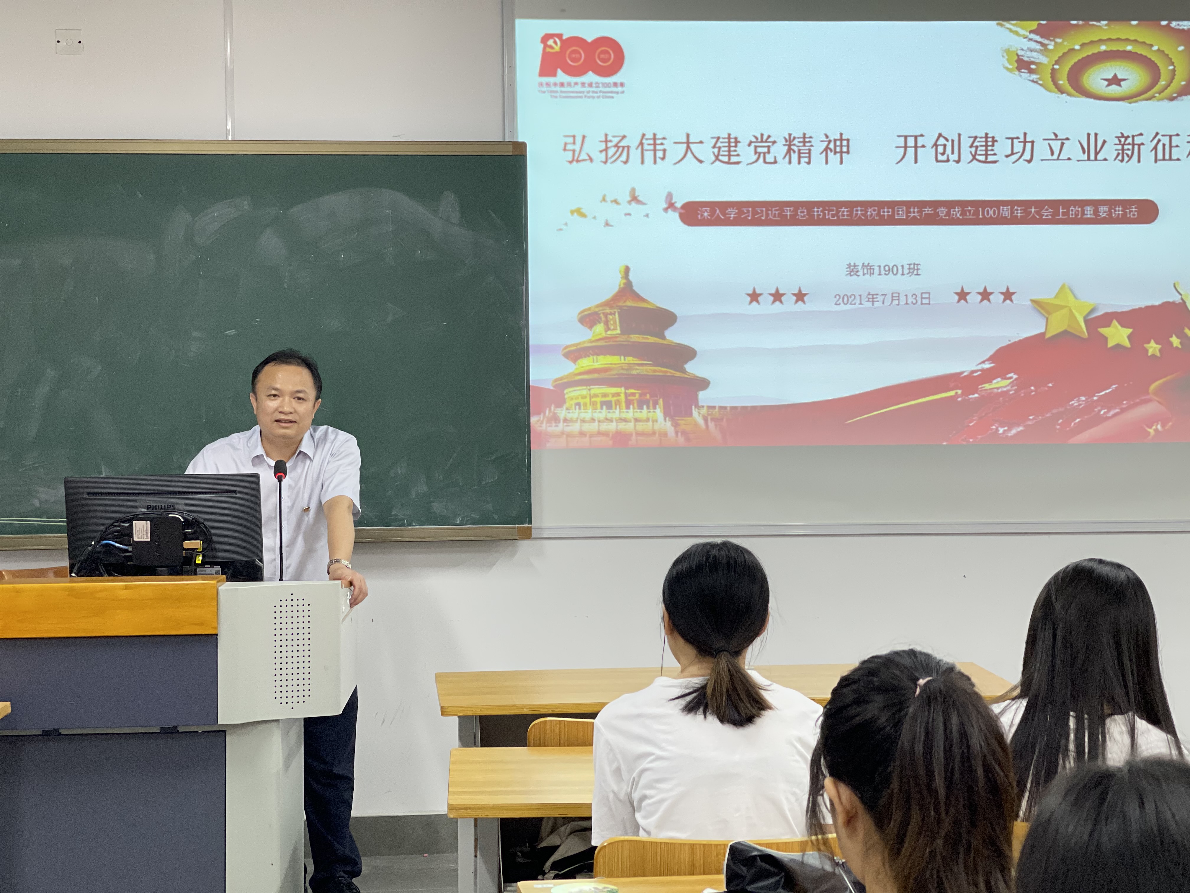 广西建院7月21日讯(艺术设计系 韦世锋)7月13日下午,艺术设计系建筑装饰1901班团支部在六号教学楼403教室开展“弘扬伟大建党精神·开创建功立业新征程”主题班会,深入学习贯彻习近平总书记在庆祝中国共产党成立100...