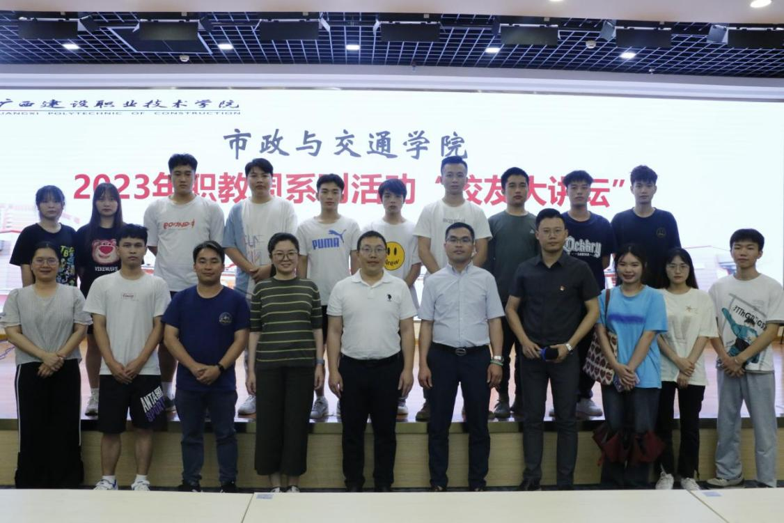 广西建院5月17日讯(市政与交通学院 文/梁璞璞 图/林艳)5月16日下午,市政与交通学院在四教二楼报告厅举办2023年职教周系列活动——校友大讲坛。完美(中国)官方道路桥梁工程技术专业2007届校友黄剑锋、2017届校友韦武兴应...